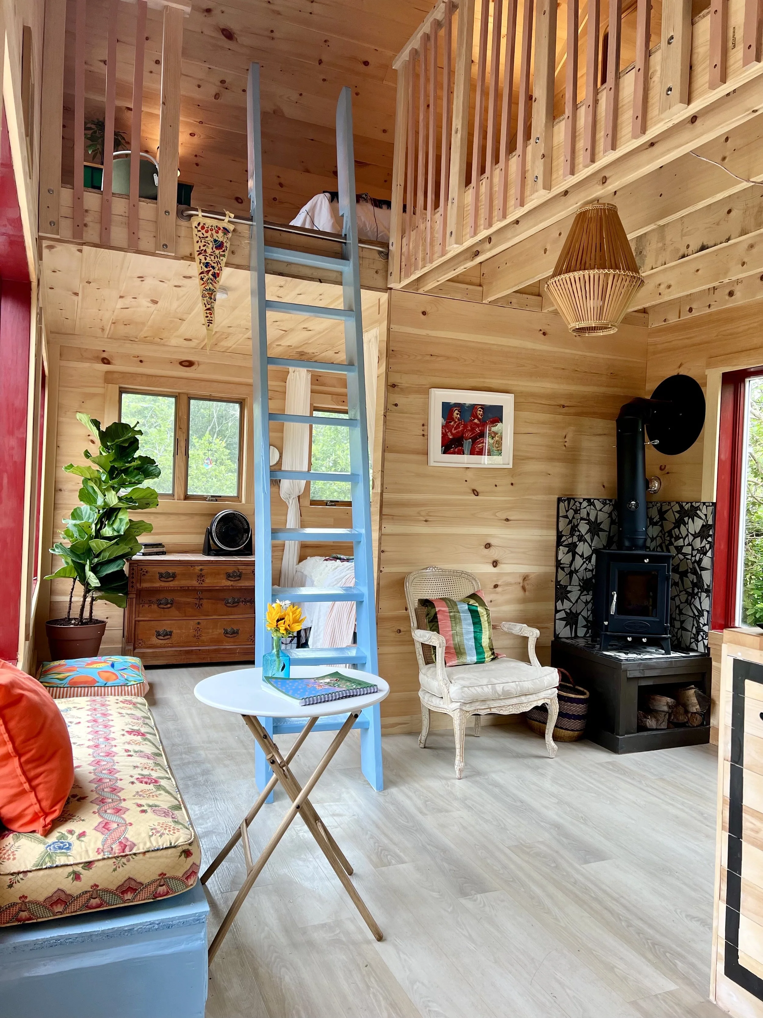 The Bambi Inn is a tiny cabin with electricity, wifi, a composting toilet and an off grid water system, she sleeps 6 people in a cozy bed nook and perched in a loft ! Enjoy a hot tub and a campfire all to yourself.